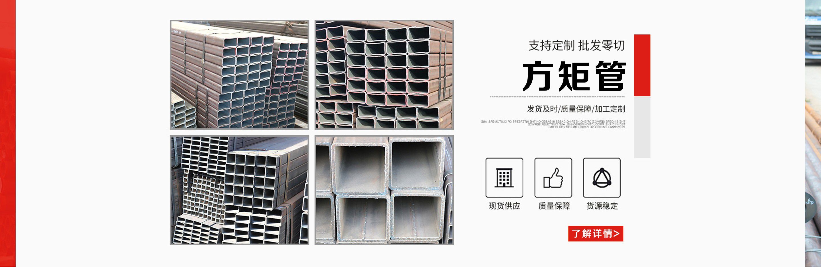 聊城睿諾偉業鋼鐵銷售有限公司是一家專注于制造銷售方管、方矩管、無縫方管、無縫方通、無縫方矩管、Q345B無縫方管、低合金方矩管、山東無縫方管、厚壁方矩管、焊接方管、大口徑方矩管、熱鍍鋅方管、鍍鋅方管、Q345B方管、Q345B方矩管、矩形鋼管、矩形無縫管、矩形無縫鋼管、厚壁方管、厚壁無縫方管、厚壁方矩管、大、小口徑方管、矩形管、矩管、冷拔方矩管、不銹鋼方矩管、無縫方管、大棚管、大棚鋼管、鍍鋅大棚管、冷拔方管的大型鋼鐵企業。所方管矩形管的規格具備了全尺寸:20*20---600*600的方管,20*30---400*800的矩管,厚度:0.6mm---28mm,規格達2800多種;材質為Q235、Q345B、20#、45#、無縫管、合金鋼;可根據客戶要求尺寸定做。產品主要應用領域:建筑鋼結構,大型場館,會展場所,升降機械,船舶制造,倉儲貨架,裝飾裝潢,交通設施,機場建設,鐵路車輛,橋梁支架,礦井支架,立體車庫,戶外廣告,健身器材,風電設備,車輛制造等行業。憑借優良的管理、開發優勢,借助超前的開發理念、先進的發展思想以及成功的運作模式,公司的規模也不斷地發展壯大.公司不斷進取,加快加強項目開發運作,進一步完善開發機制,強勢打造公司的品牌效應。  為適應市場需求,加快發展進程,公司積極行動,經過...
